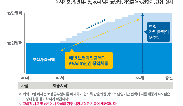 매년 가입금액의 5%씩 정액으로 체증, 가입금액의