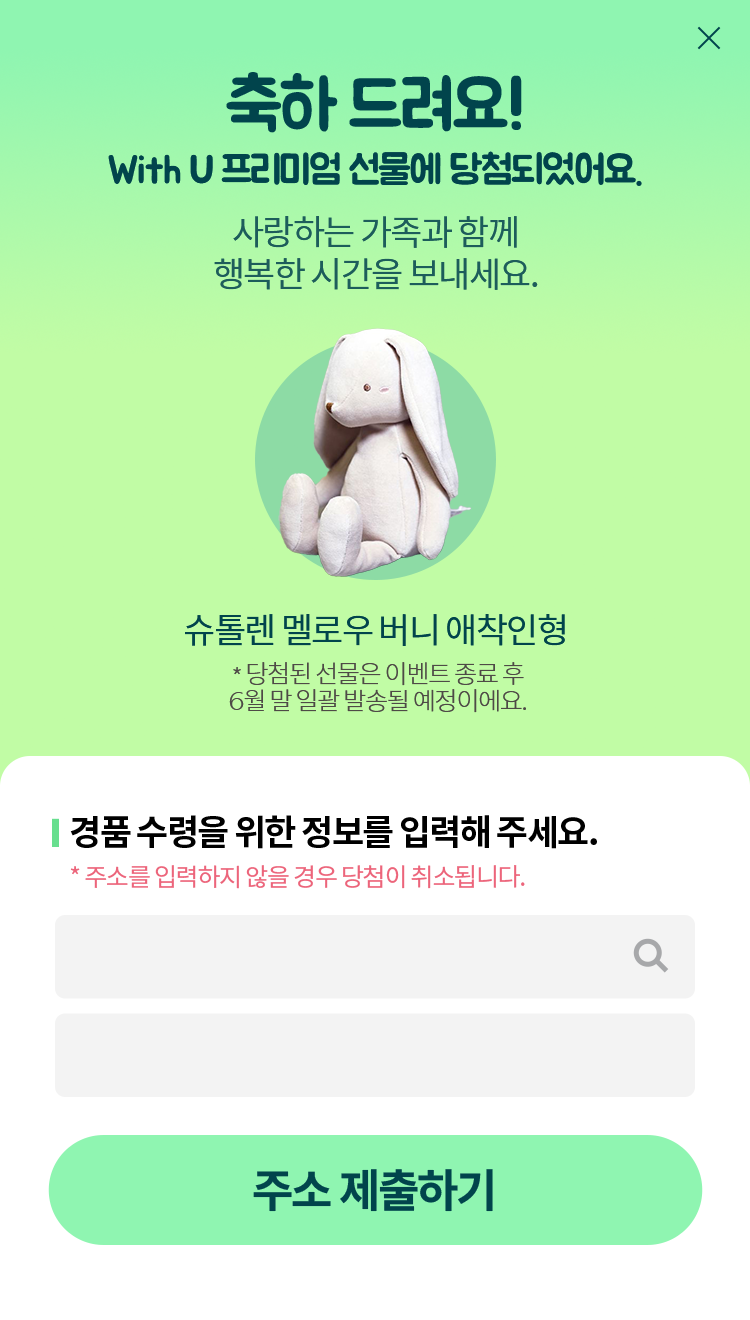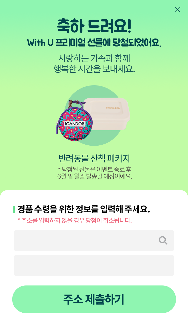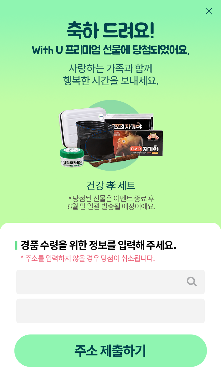 위 내용을 확인했으며 [개인정보보호법]에 따라 경품 제공을 위한 개인정보 수집 · 이용에 동의합니다.