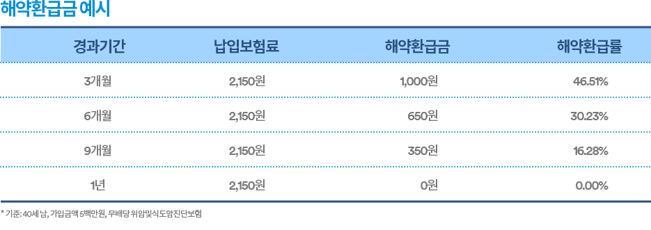 중도 해지하는 경우 지급되는 해약환급금은 납입한 보험료보다 적거나 없을 수 있습니다.