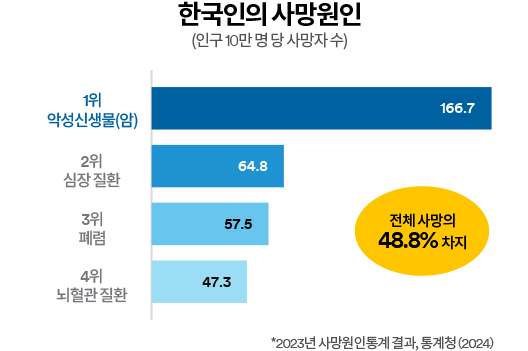 암, 심장 질환, 폐렴, 뇌혈관 질환