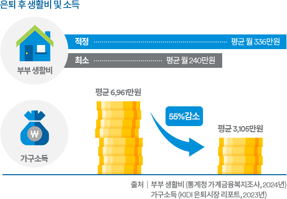은퇴 후 소득은 은퇴 전 대비 55% 감소하며