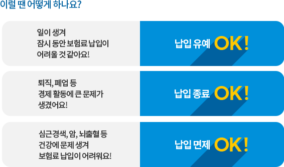 퇴직, 폐업 등 어려운 시기에는 계약을 해지하지 않고도